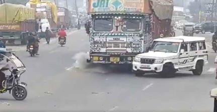 रामपुर में कार पर पलटा भूसे से लदा ट्रक, कार चालक की मौत