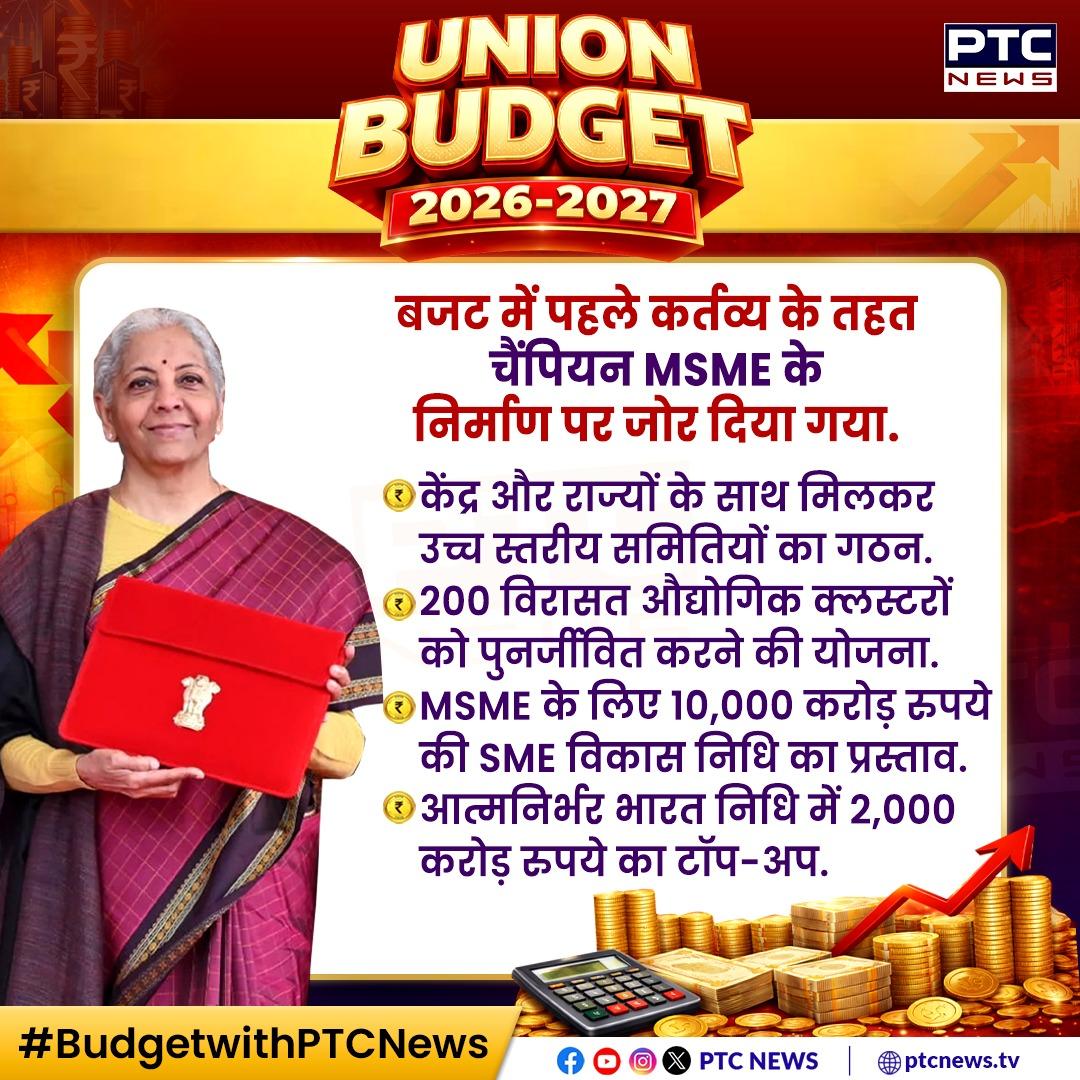 एमएसएमई क्षेत्र के लिए 10,000 करोड़ रुपये का कोष रखा गया है, ताकि भविष्य के चैम्पियन उद्यमियों का विकास हो सके. देश में सात हाई-स्पीड रेल कॉरिडोर बनाए जाएंगे, जो शहरों के बीच विकास संबंध स्थापित करेंगे.