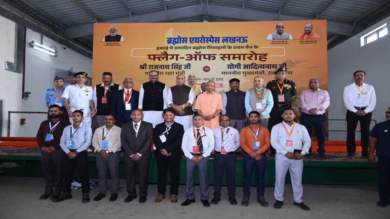 राजधानी लखनऊ में शनिवार को आत्मनिर्भर भारत का एक नया अध्याय लिखा गया, जब ब्रह्मोस एयरोस्पेस लिमिटेड की लखनऊ इकाई में उत्पादित सुपरसोनिक ब्रह्मोस मिसाइलों के पहले बैच का फ्लैग ऑफ केंद्रीय रक्षा मंत्री राजनाथ सिंह और मुख्यमंत्री योगी आदित्यनाथ ने किया। भारत माता की जय’ के जयघोष के बीच जब मिसाइलों का पहला जत्था रवाना हुआ तो समारोह गर्व, गौरव और देशभक्ति से गूंज उठा। कार्यक्रम को संबोधित करते हुए मुख्यमंत्री योगी आदित्यना ने कहा कि ब्रह्मोस केवल भारत की नहीं, बल्कि पूरी दुनिया में अपने मित्र देशों की रक्षा करने का सबसे सक्षम हथियार है। उन्होंने कहा कि रक्षा मंत्री राजनाथ सिंह के प्रयास से ब्रह्मोस लखनऊ में विकसित हुआ है, जो देश की खुशहाली का माध्यम बना है। जब व्यक्ति सुरक्षित रहता है, तभी चैन की नींद सोता है। लखनऊ में बनी मिसाइल पूरे देशवासियों की सुरक्षा और समृद्धि की गारंटी है।