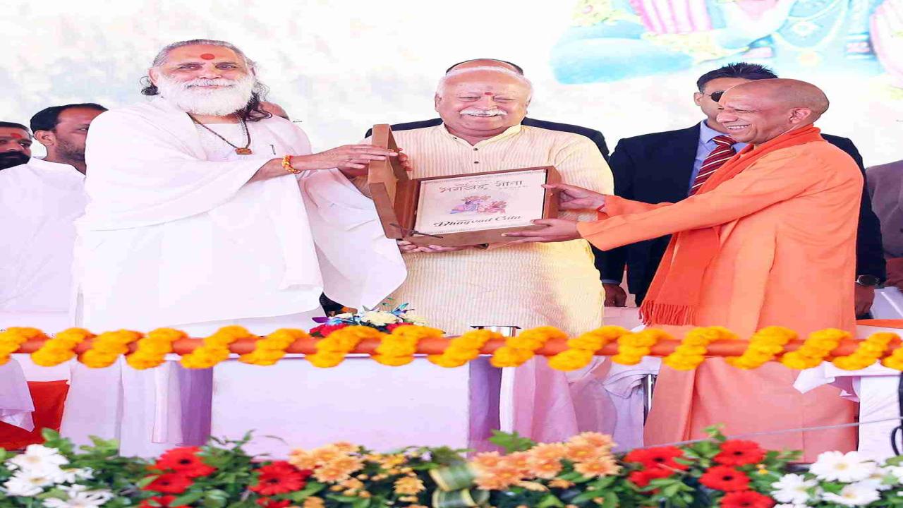 सीएम योगी ने कहा कि राष्ट्र प्रथम के भाव के साथ हर पीड़ित संग खड़ा होना (जो भारत को परम वैभव तक ले जाने में सहायक हो सकता है) राष्ट्रीय स्वयंसेवक संघ की प्रेरणा है। आरएसएस ने पिछले 100 वर्षों में सेवा के साथ कोई सौदेबाजी नहीं की, लेकिन कुछ लोगों ने दुनिया व भारत में सेवा को ही सौदे के माध्यम बनाया है। वे लोभ, लालच और दबाव से भारत की डेमोग्राफी को बदलने के लिए छल व छद्म का सहारा लेकर अपना ताना-बाना बदलकर भारत की आत्मा पर प्रहार करने का प्रयास कर रहे हैं। इन स्थितियों में भगवान की वाणी श्रीमद्भगवदगीता नई प्रेरणा बन सकती है।