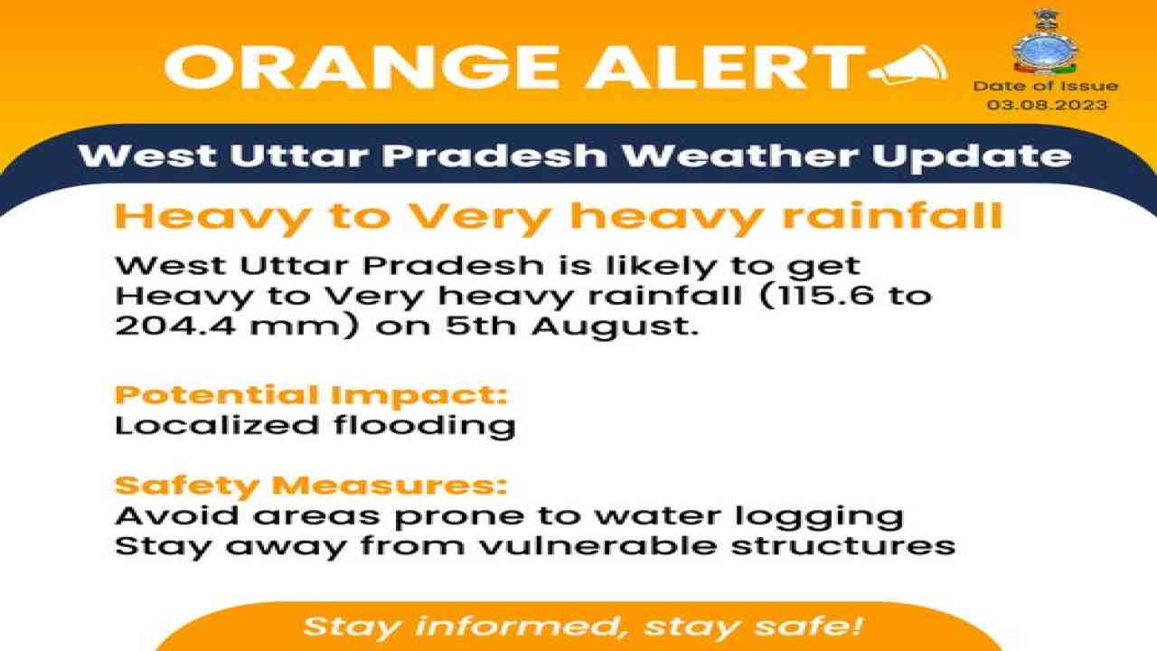 UP Weather Alert! पश्चिमी उत्तर प्रदेश में बारिश का ऑरेंज अलर्ट, 5 अगस्त को सकती है भारी से बहुत भारी वर्षा